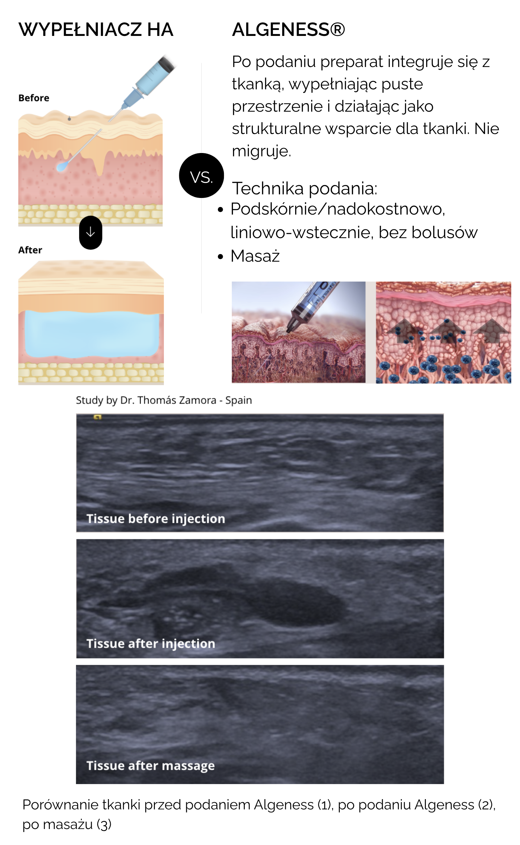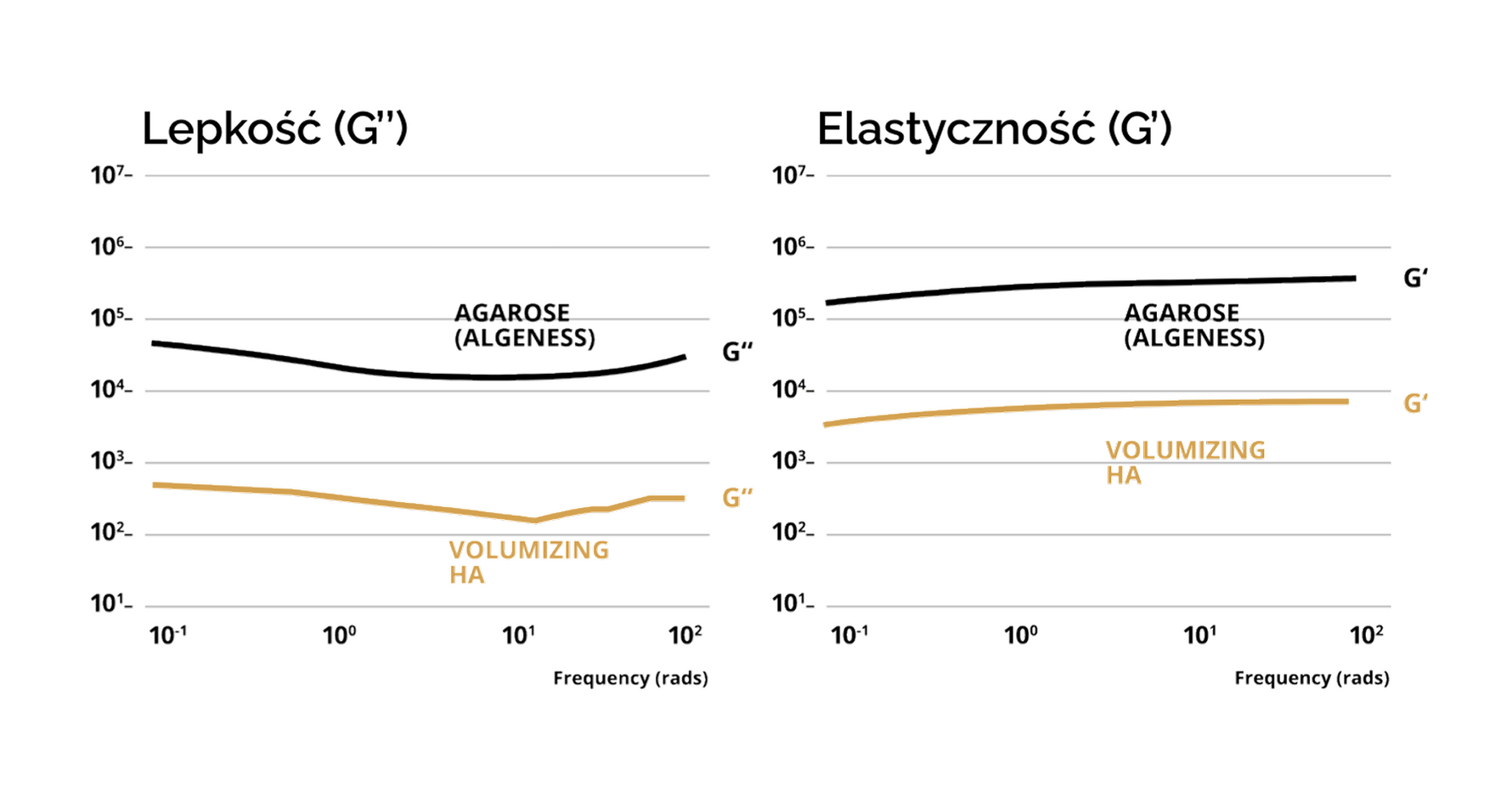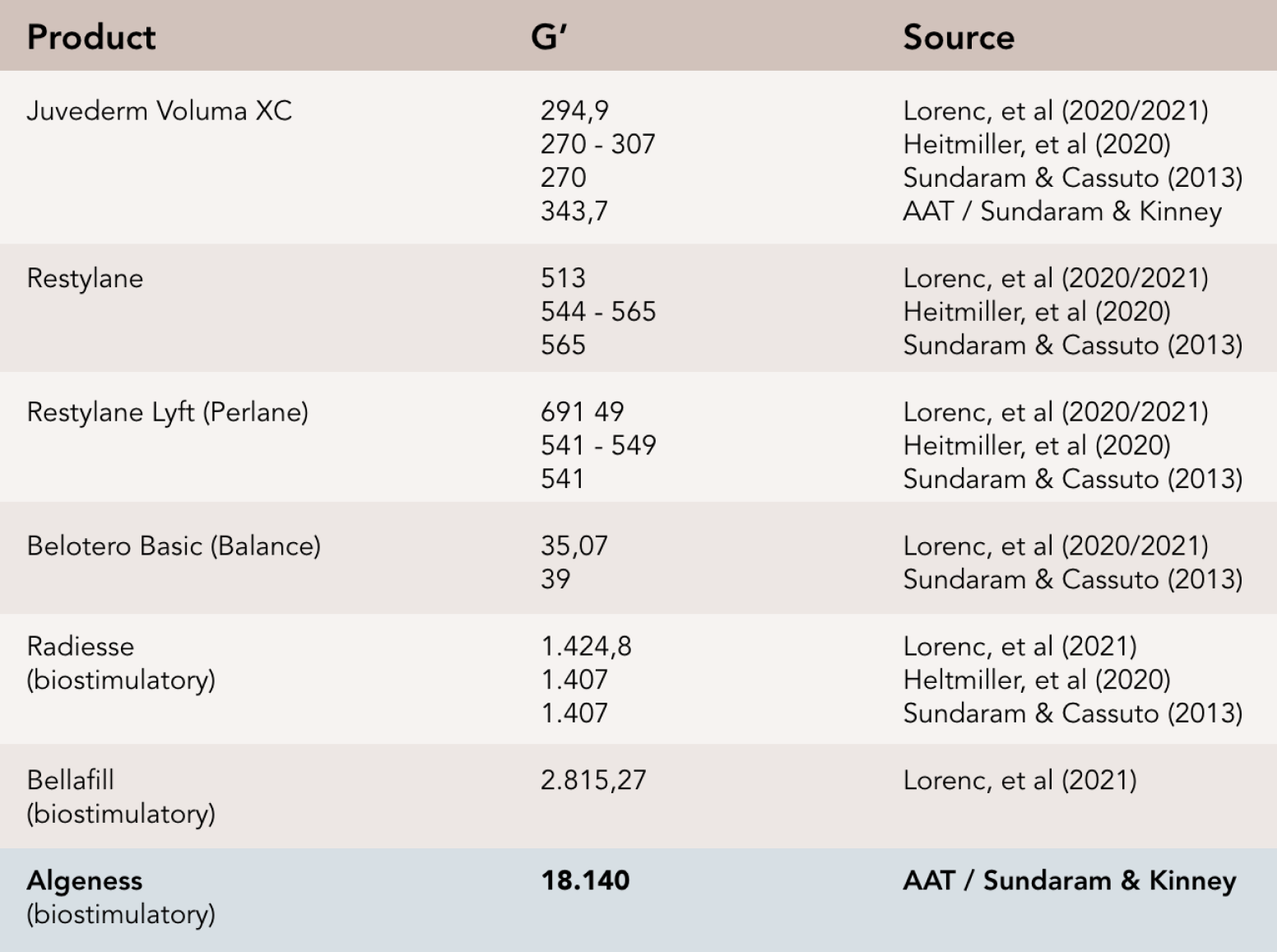 Algeness ma najwyższy G' wśród implantów iniekcyjnych. Ze względu na swoje właściwości reologiczne Algeness lepiej zachowuje swój kształt,